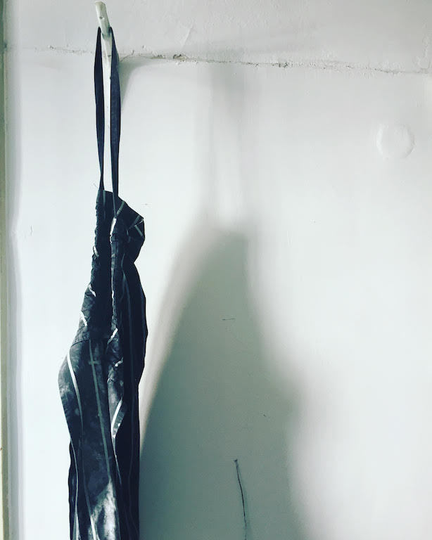 U malom kutku na spratu, tamo gde se nekada verovatno čuvalo brašno, Hana sada čuva svoje stvari. Kecelja je okačena i sada kao i nekad -pre prljava od brašna a sada od gline. Odmah pored je mesto gde se stvara magija a onda se sve te ručno radjene šolje, tanjiri, posude i posudice nađu u samom ateljeu i to na nekadašnjim policama za hleb! 😉