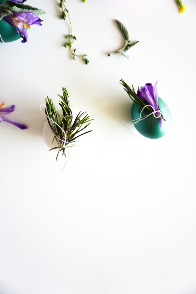 Snežno bela jaja sam kupila u Merkatoru, obojile smo ih bojama za farbanje jaja, poljskog cveća nije bilo ni za lek pa smo jedva nekako našli ovaj šafran i jagorčevinu šetajući po gradskom parku a žalfiju i ruzmarin smo kupile na pijaci.