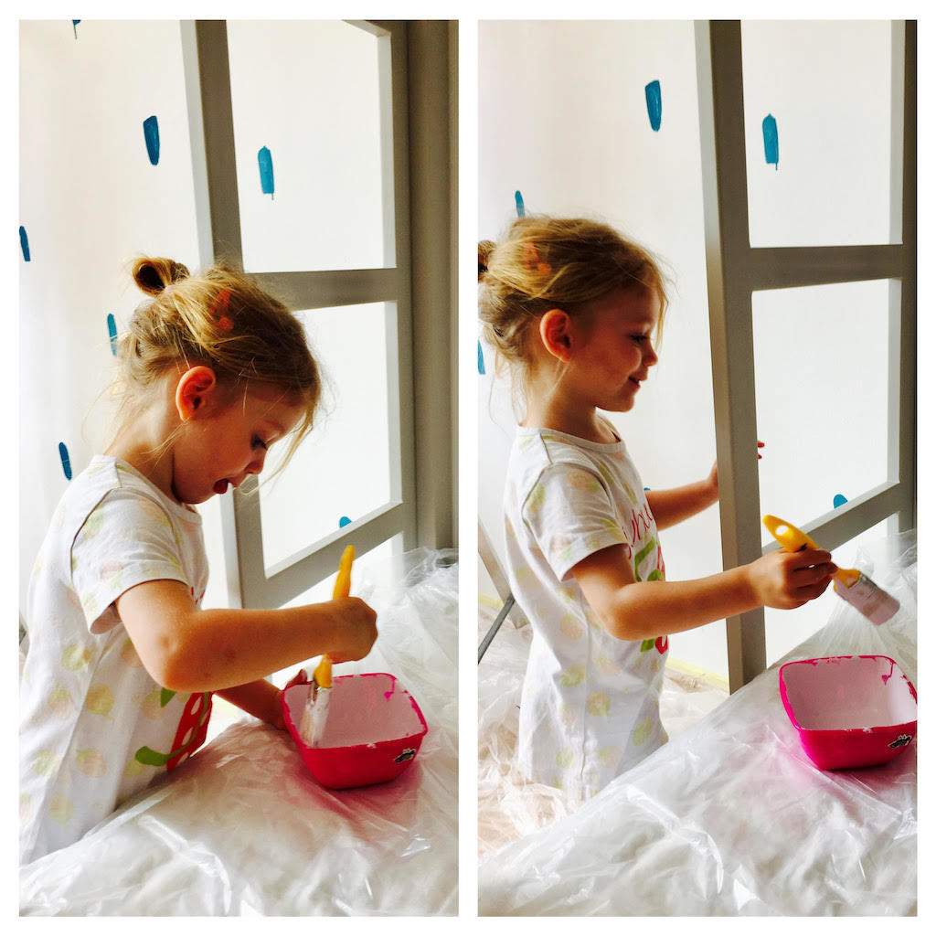 Zato smo jednog dana ja i devojčice otiše po ove male boje (koje su savim dovoljne za jedan poveći zid kakav je naš) i čiste četkice i odredile dan kada ćemo se baciti na posao.