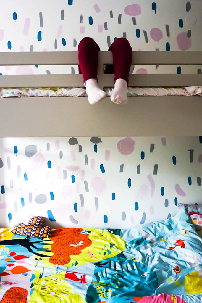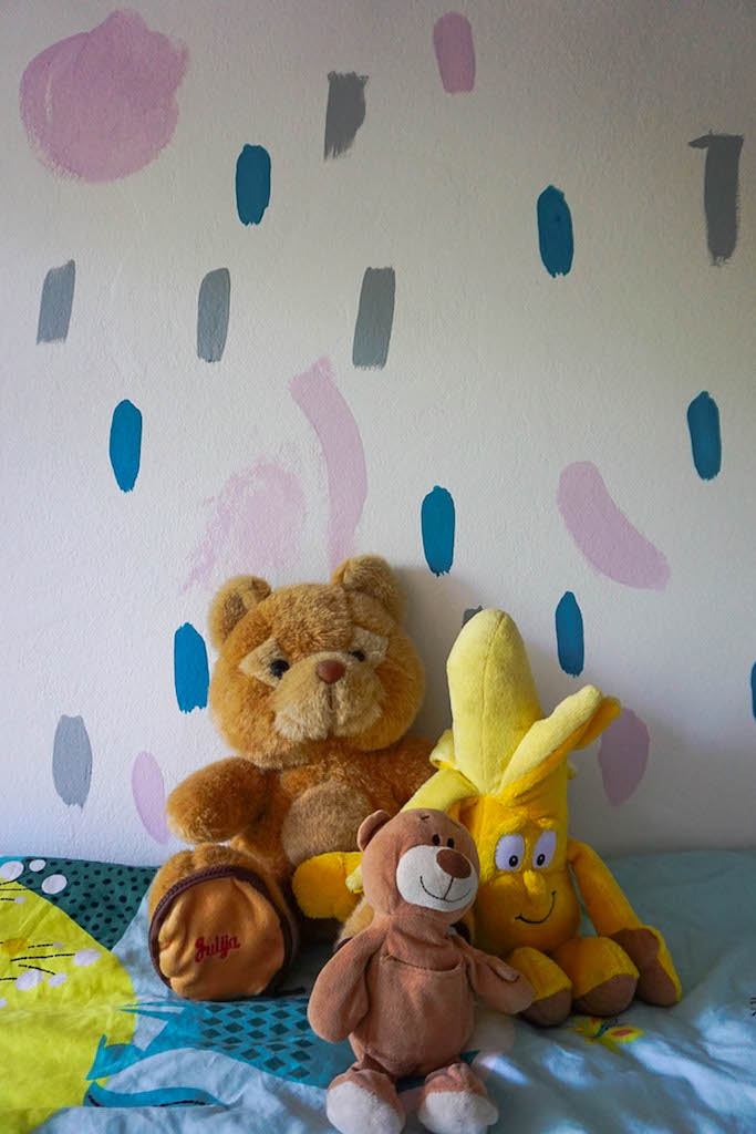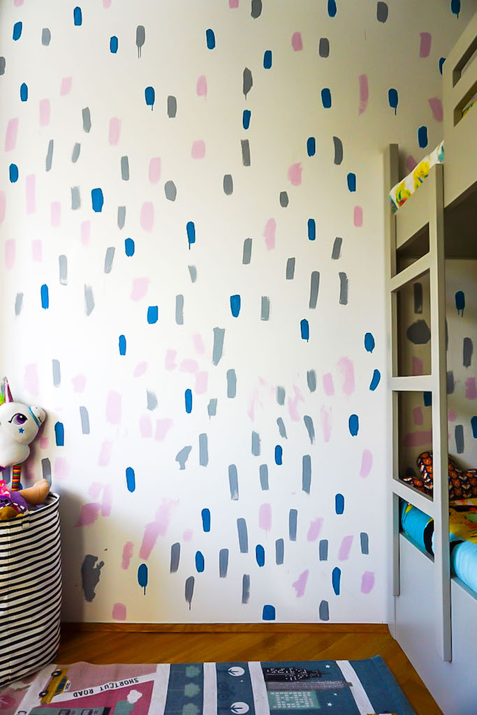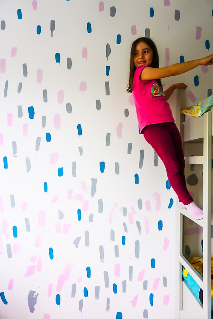 Ostavile smo da se zid osuši i izašle na igralište – i uveče su već spavale u svojoj „novoj“ sobici bez bilo kakvih neprijatnih mirisa farbe.