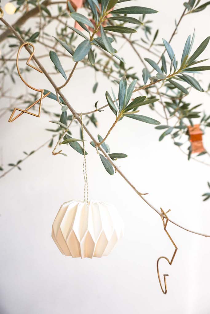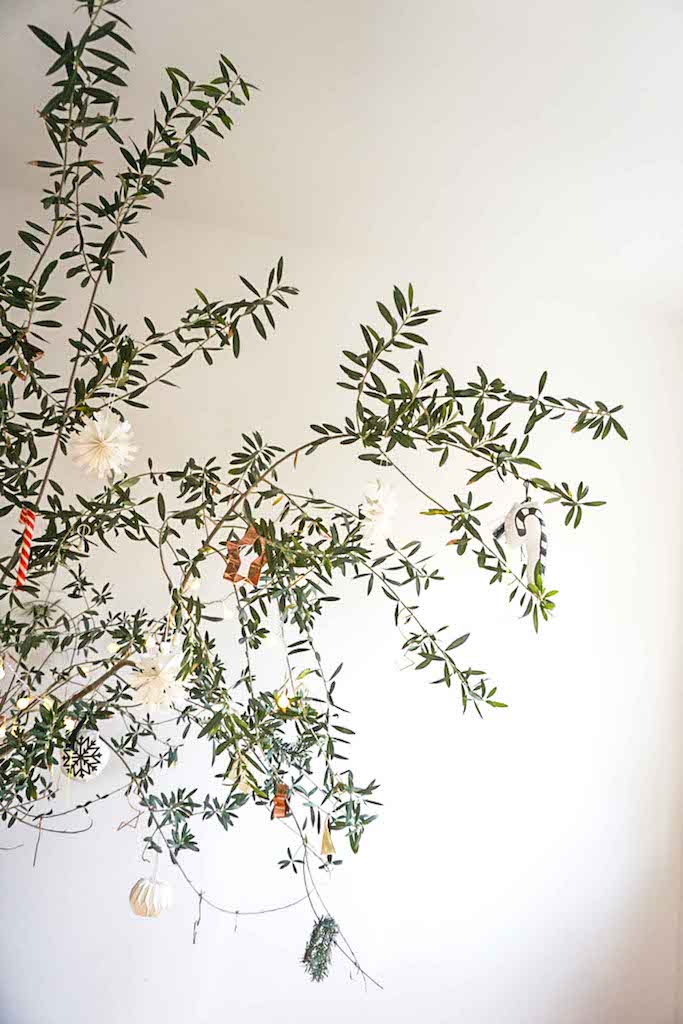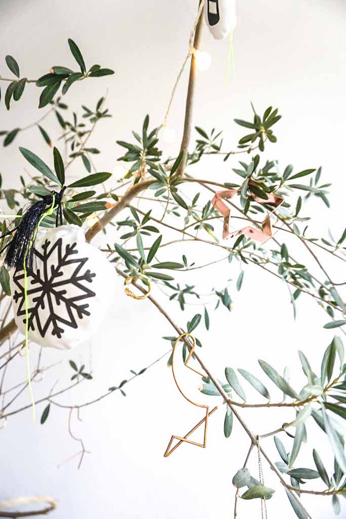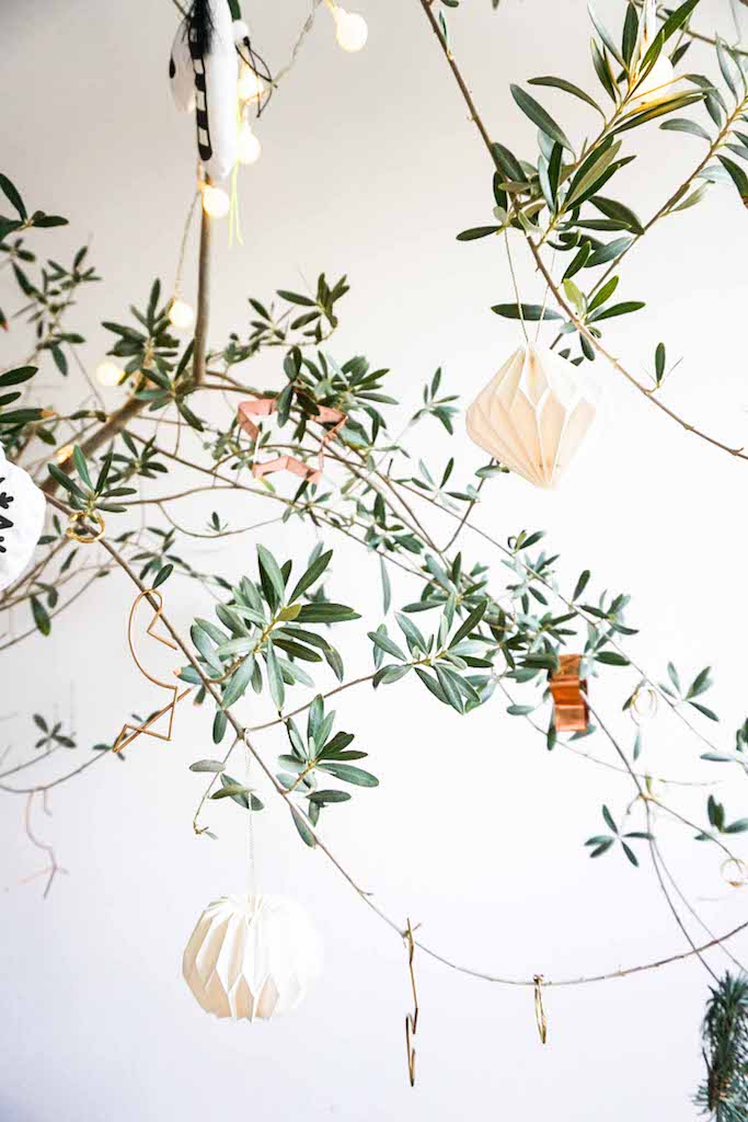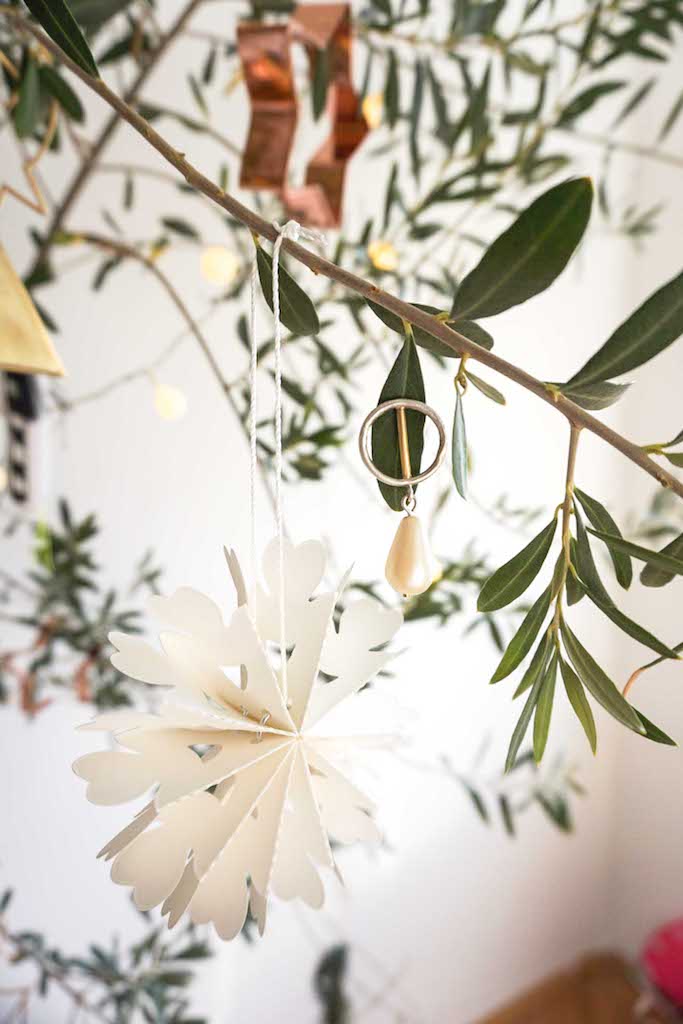 A pošto danas činim baš ono što me je volja, odlučujem da će drvo, pored prelepog nakita, krasiti samo stvari od papira i mesingani kalupi za kolače. Opet, činjenica da tanje i savitljivije grane masline ne mogu da podnesu tešku ornamentiku, nemaju nikakve veze sa tim! Ja sam zamislila da će ovo biti jedno jednostavno ukrašeno a opet lepo i srećno drvo 😉
