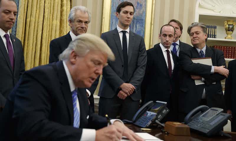 foto SAD predsednika TRumpa u sobi punoj muškaraca dok potpisuje dokument koji se tiče ženskih reproduktivnih prava