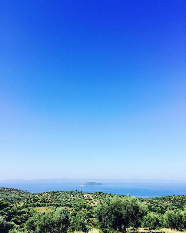 Dok su devojčice odlično podnele put, mi smo morali da se zaustavljamo na coffe refill u Beogradu i svež vazduh i branje cveća na planini pre nego što smo stigli na finalno odredište – maleno mesto na Sitoniji, drugom prstu Halkidikija.