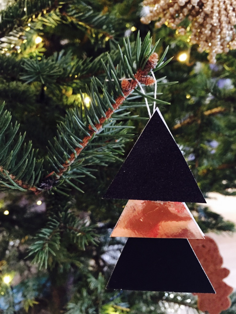 Po istom principu možete sami napraviti ukrase od papira i kartona te recimo samo njima ukrasiti jelku koja će izgledati veoma moderno, lako i ne pretrpano.
