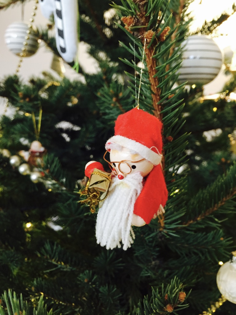 A kad smo već kod ukrasa: skupljam ih poslednjih 10 godina i to mi dođe kao neka vrta hobija. Ove godine sam se odlučial za crno-belo-zlatnu paletu te sam izbacila sve crvene ukrase i dodala samo moje vintage figurice.  Još malo perlica i gospođica je spremna za fotografisanje!:)