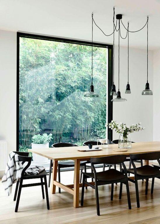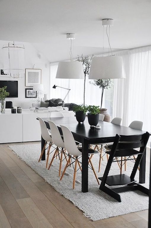 Veliki, crni sto će još više doći do izražaja ako mu dodate bele stolice.